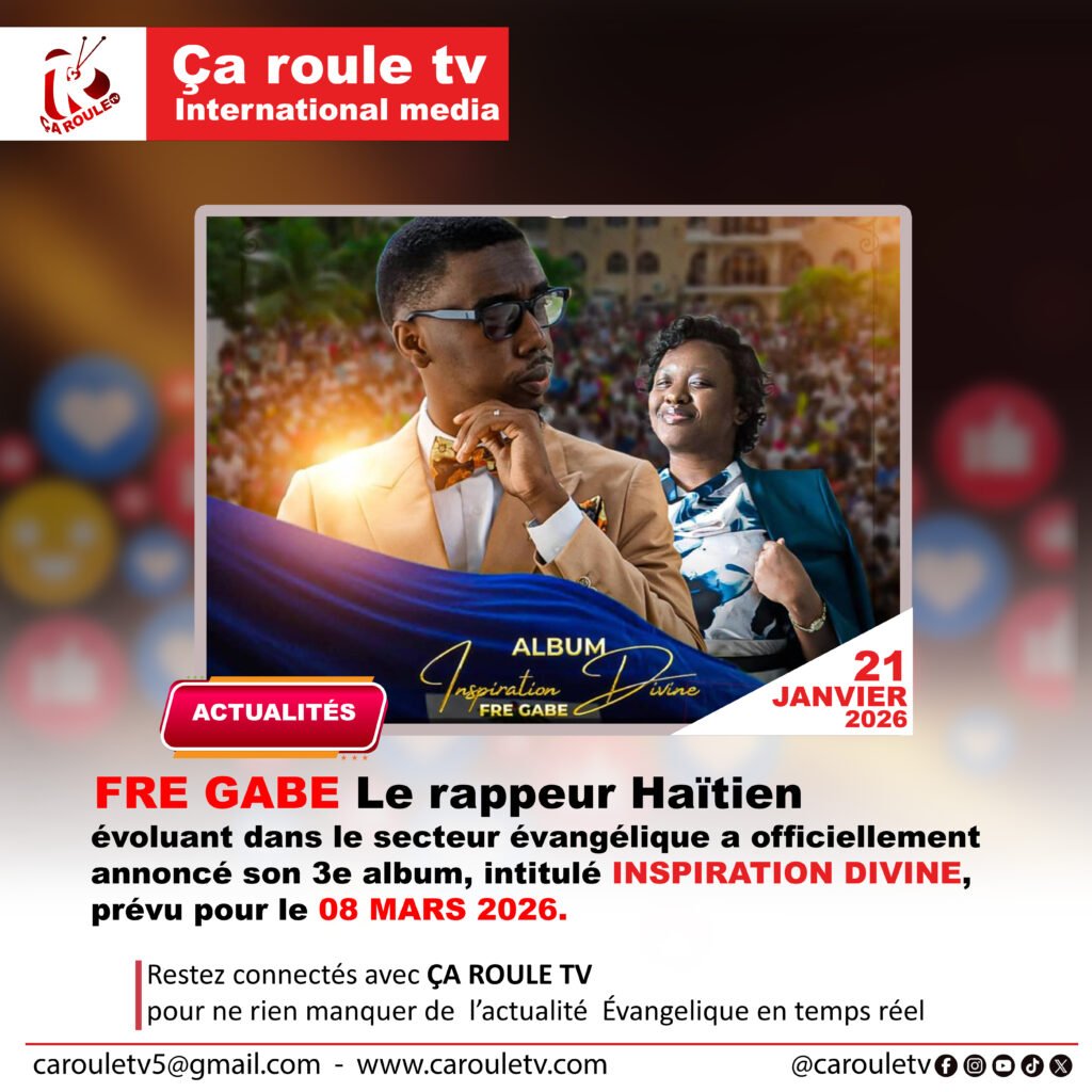Le rappeur haïtien évoluant dans le secteur évangélique a officiellement annoncé son troisième album, intitulé Inspiration Divine, prévu pour le 08 mars 2026.